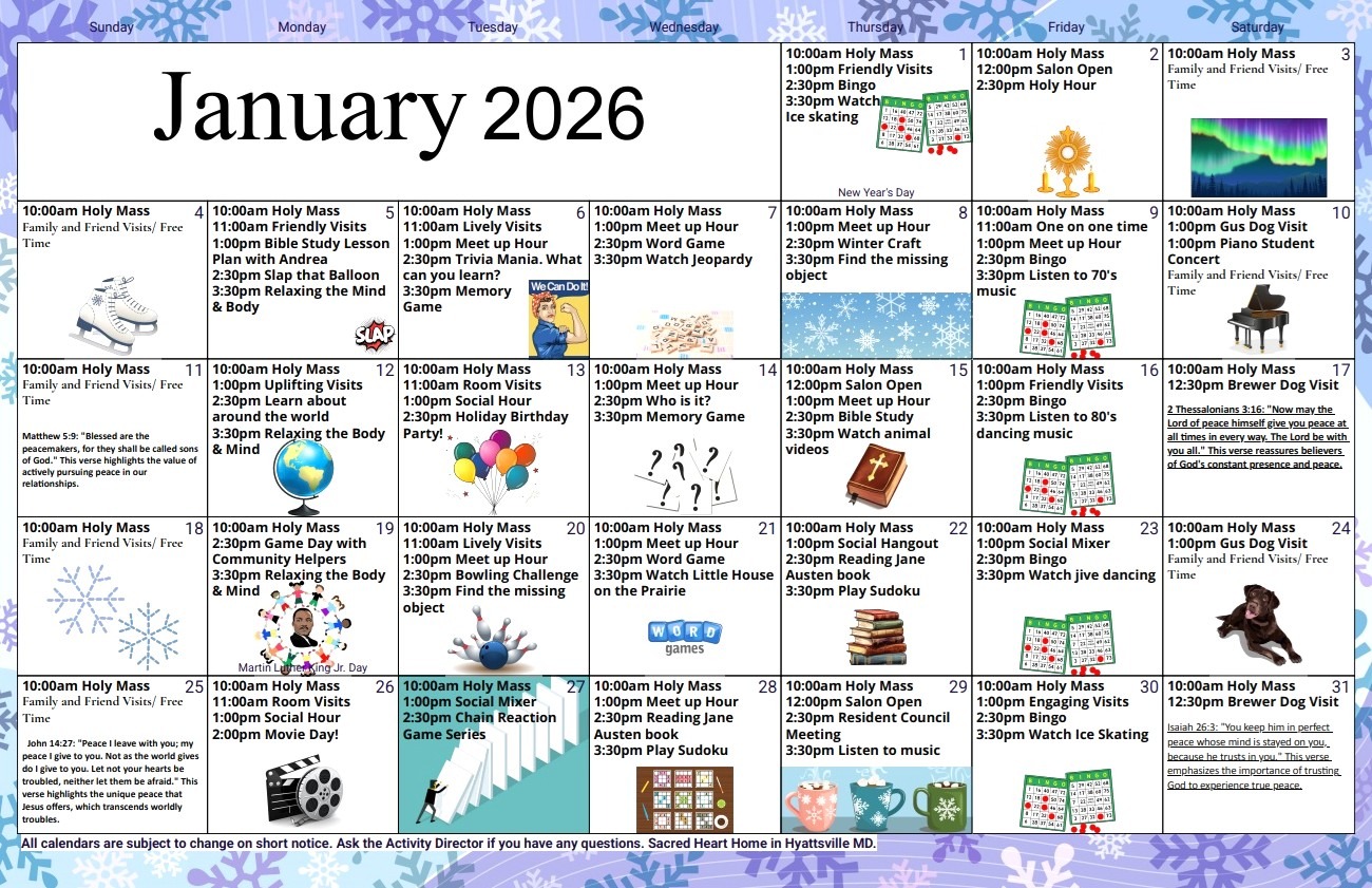 For more information contact Activities Director, Paris Holbrook: Paris.Holbrook@sacredhearthome.org